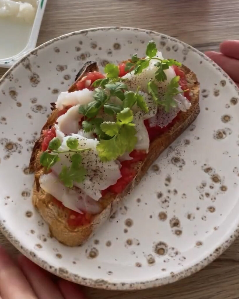 5- Tartine à la purée de tomates (Pan con tomate espagnol) et morue fumée