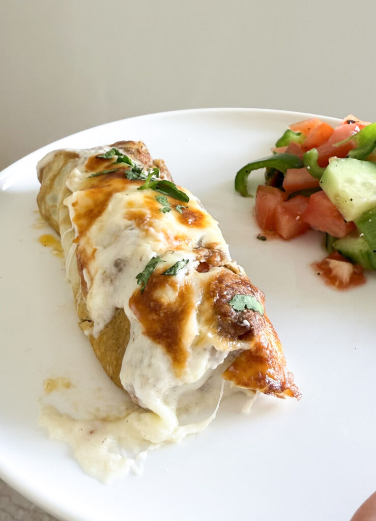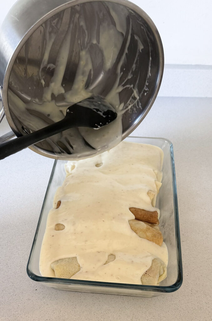 Recouvrez vos crêpes farcies à la viande hachée et poivrons de béchamel.