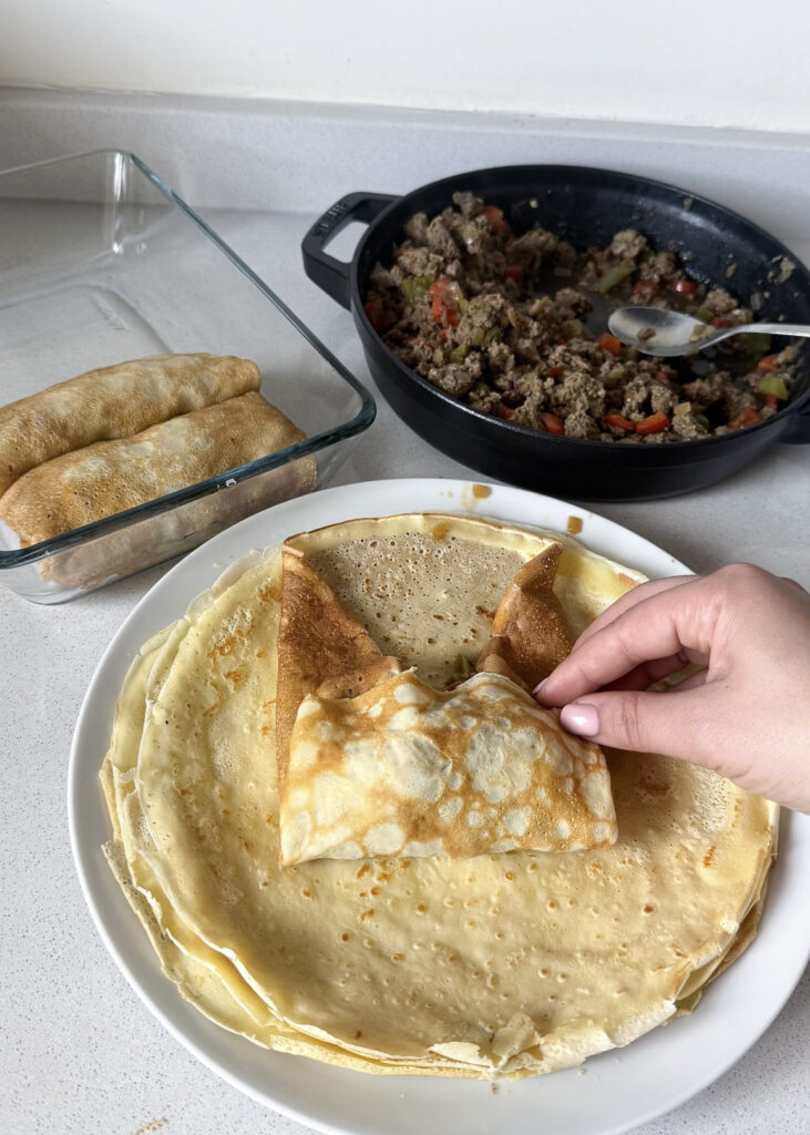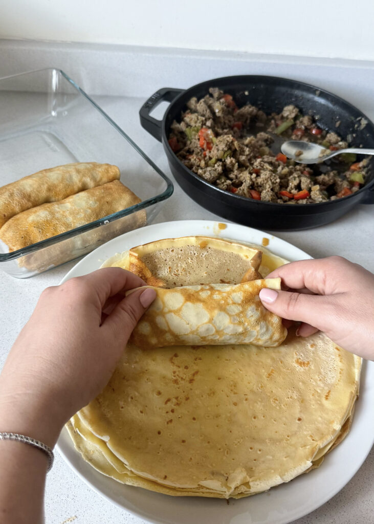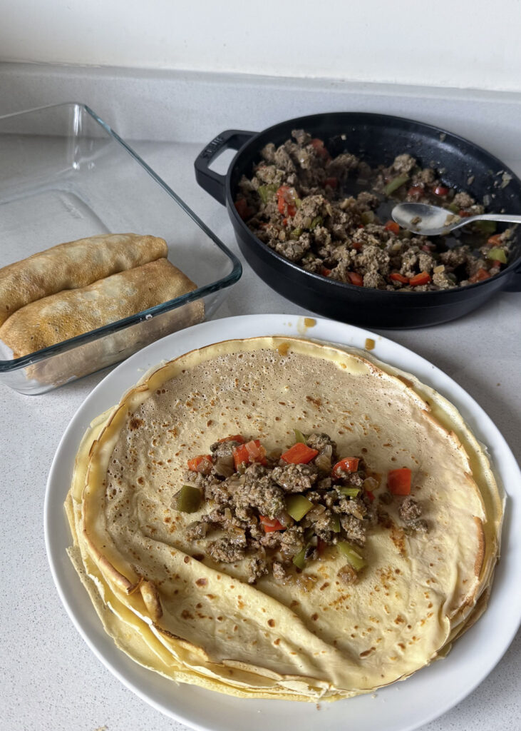 Comment préparer les crêpes farcies à la viande hachée et aux poivrons