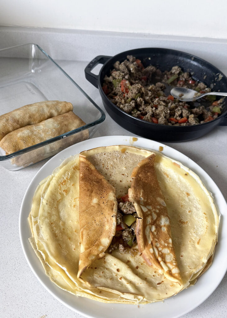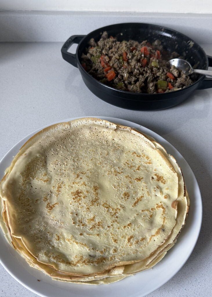 Aujourd’hui, je partage avec vous cette recette de crêpes farcies à la viande hachée et aux poivrons.