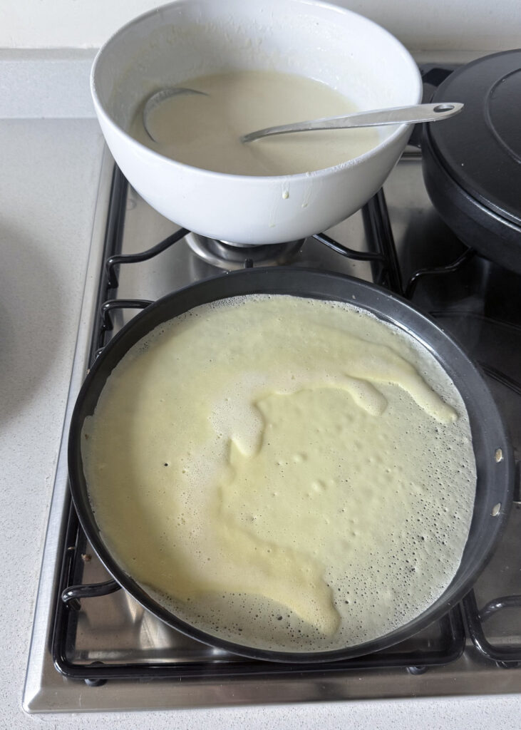 Laissez reposer votre pâte à crêpes pendant 15 minutes avant les cuire dans une poêle antiadhésive.
