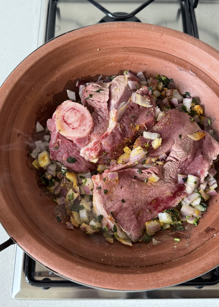 - Ajoutez l’eau, couvrez et laissez cuire pendant 1 heure.