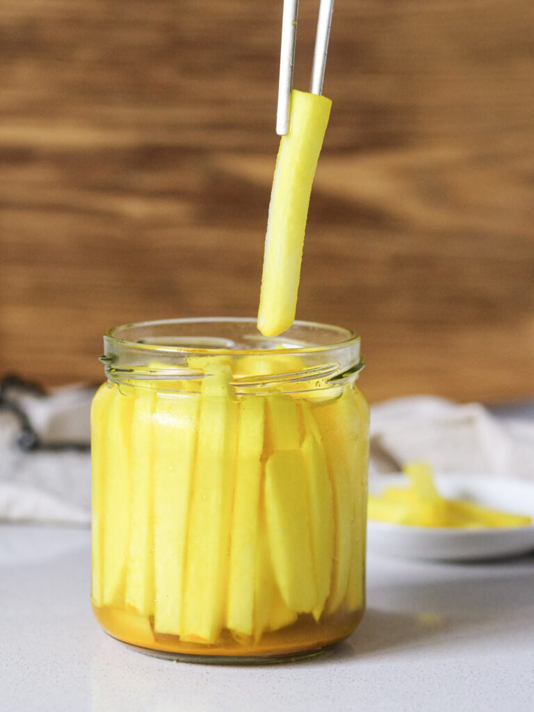 C’est en réalité de simples pickles de radis au curcuma et je vais vous montrer comment les faire maison.